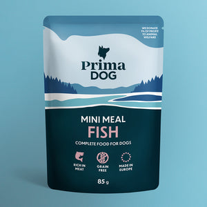 PrimaDog Mini Meal Kalaa kastikkeessa on herkullisen mehevä, viljaton koiran märkäruoka, jonka pieni pakkauskoko ja sopivan kokoiset kalasuikaleet vastaavat erityisen hyvin pienten koirien tarpeisiin. Kätevästä annospussista lisäät helposti kalaisaa höystettä myös isomman koiran kuivaruokaan. Lisäksi voit käyttää Mini Meal -märkäruokaa motivoivana palkkana tai reissueväänä, sillä avaamaton pakkaus säilyy huoneenlämmössä. Voit myös lisätä Mini Mealia veteen saadaksesi koirasi juomaan treenin jälkeen tai kuumalla säällä.
