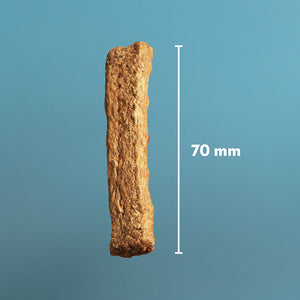 Tuoreesta lihasta valmistettu viljaton koiran herkku maistuu palkkiona nirsollekin koiralle. Mehevä herkkutanko on helppo paloitella käsin.