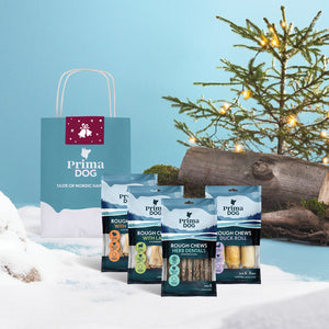 Joulun purupaketti pienelle koiralle on täydellinen lahja koirille, jotka rakastavat pureskelua ja monen makuisia ja muotoisia puruluita. Paketti sisältää neljä kestävää S-koon PrimaDog Rough Chews -puruluuta sekä paperikassi ja lahjapakettitarra, joilla paketoit joululahjan vaivattomasti.